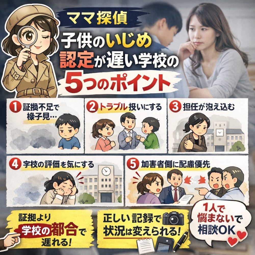 🔵【ママ探偵】子供のいじめ|認定が遅い学校に共通するポイント…5選