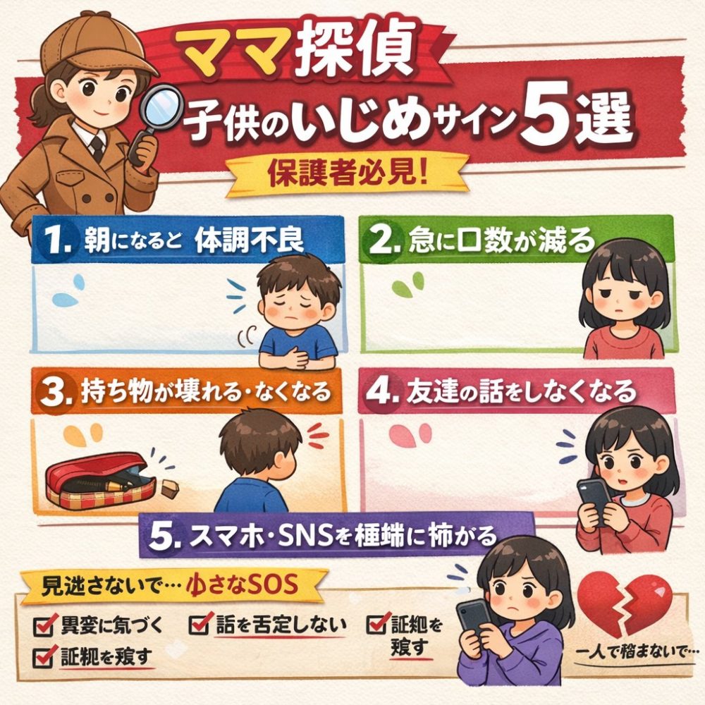 今回は、保護者が見逃してはいけない「いじめのサイン」をわかりやすく解説します。